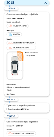 Zpráva umožňuje komplexní ověření vydaných listů vlastnictví vozidla (spolu se zaznamenanými stavy tachometru) a záznamů v listech vlastnictví. Zprávy jsou doplněny o informace o případných totálních škodách na vozidle, hlášení společností, které se zabývají likvidací vozidel, o historii nehodovosti a oznámených krádežích. Zajímavým dodatkem jsou údaje o archivovaných nabídkách na prodej vozidla na území USA.